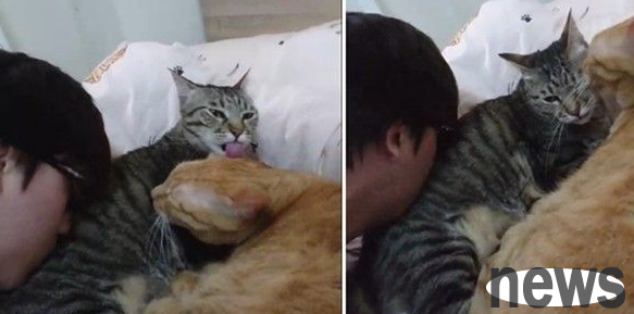 Another cat-absorbing patient has fallen victim to the disease. The orange cats "Ponkan" and tabby "Tiaotiao" who live in Taoyuan are licking each other's fur, but their father randomly enters the scene and buries his head in the cat's fur and sucks it wildly. The "harassed" master can't help but squint and look at him with contempt, "Is this slave suffering from the disease?" (Receive instant messages from the Furry Army! Join the Pet Cloud Line)