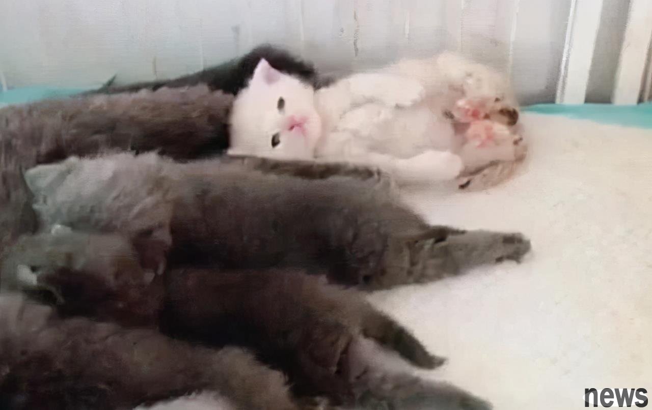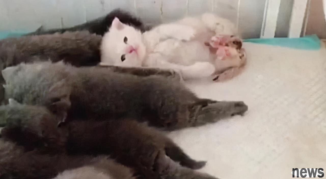 The netizen raised a motherly blue cat at home. Not long ago, he gave birth to a litter of cats. However, strangely, a white cat unexpectedly appeared in this litter of cats, which made people wonder if this is someone else's little cute, and he went wrong?