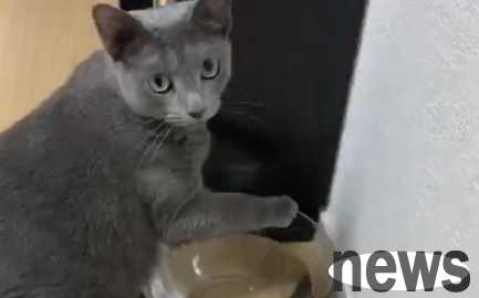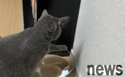 After the cat was so meant to drink two sips of water, he began to fiddle with the water bowl with his paws, looking very hard! The cat kept using his paws to test along the edge of the water bowl, but no matter where he pressed, the water bowl did not move.
