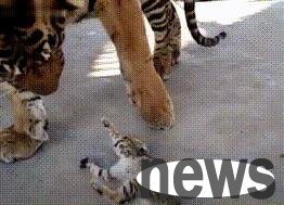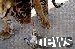 The little milk cat broke into the tiger's den. The tiger raised its paws and was at a loss: it was too small to attack.