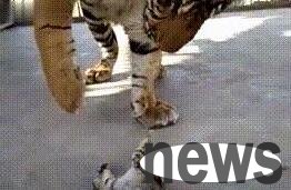 As for the little cat, after seeing such a big guy, it became extremely scared. It instinctively felt that this big guy was threatening it, so even when it was lying on the ground, it started to explode, barked at the tiger fiercely, and wanted to catch the tiger with its claws. Originally, the tiger raised its paws to touch the little milk cat to see what it was. However, when it was touching it, the little milk cat extended its paws to attack before it touched it. The tiger also raised its paws and was at a loss.