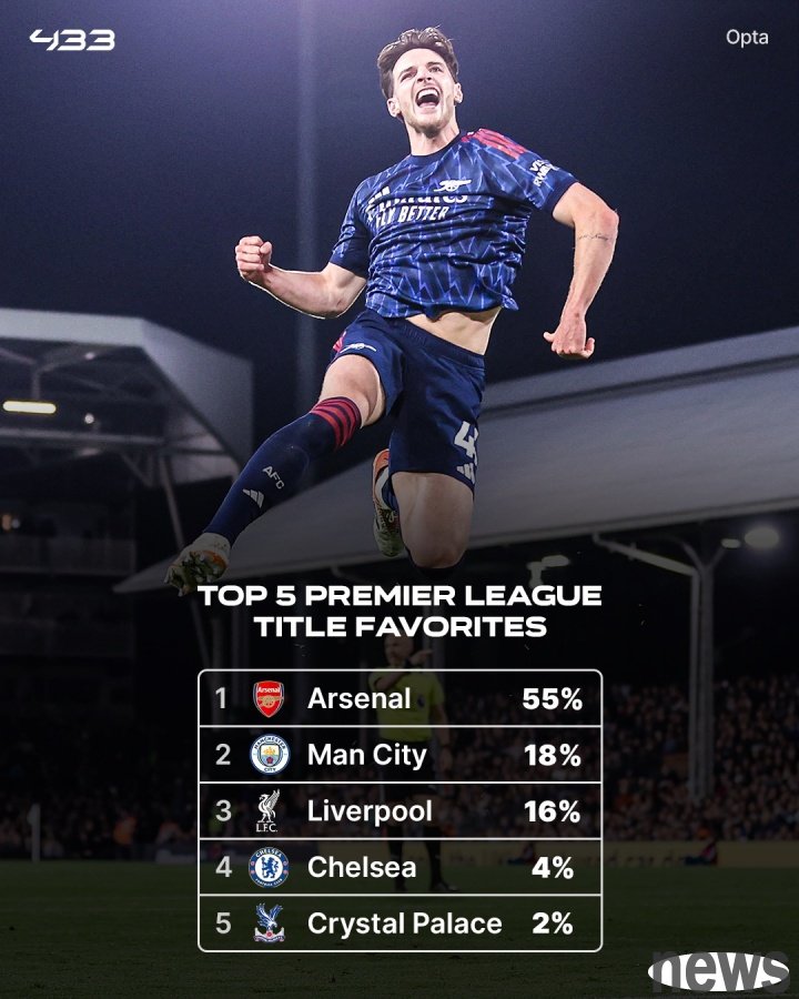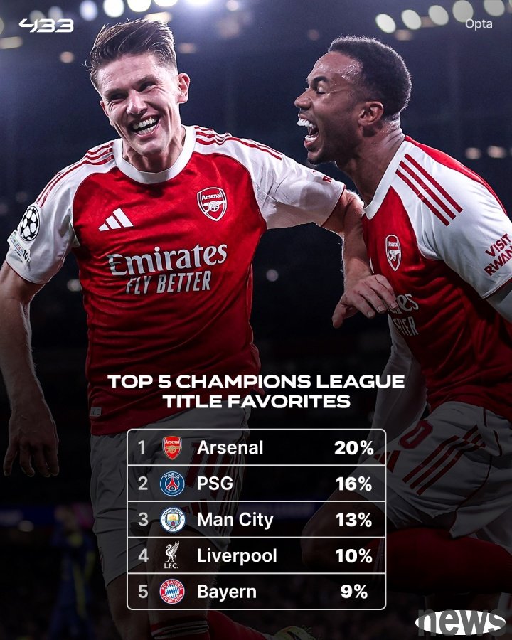 According to OPTA calculations, Arsenal has a 55% chance of winning the Premier League and a 20% chance of winning the Champions League, both of which are the highest.