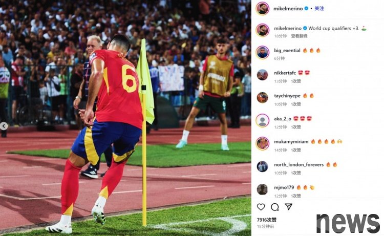 Spain defeated Bulgaria 3-0 away in the World Cup, and Merino received a corner kick and scored a header after receiving a corner kick.