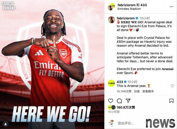 Maduaike transferred from Chelsea to Arsenal in mid-July for 52 million pounds, and Eze is about to join. These two teammates, both of England's national team, will gather at Arsenal this summer.